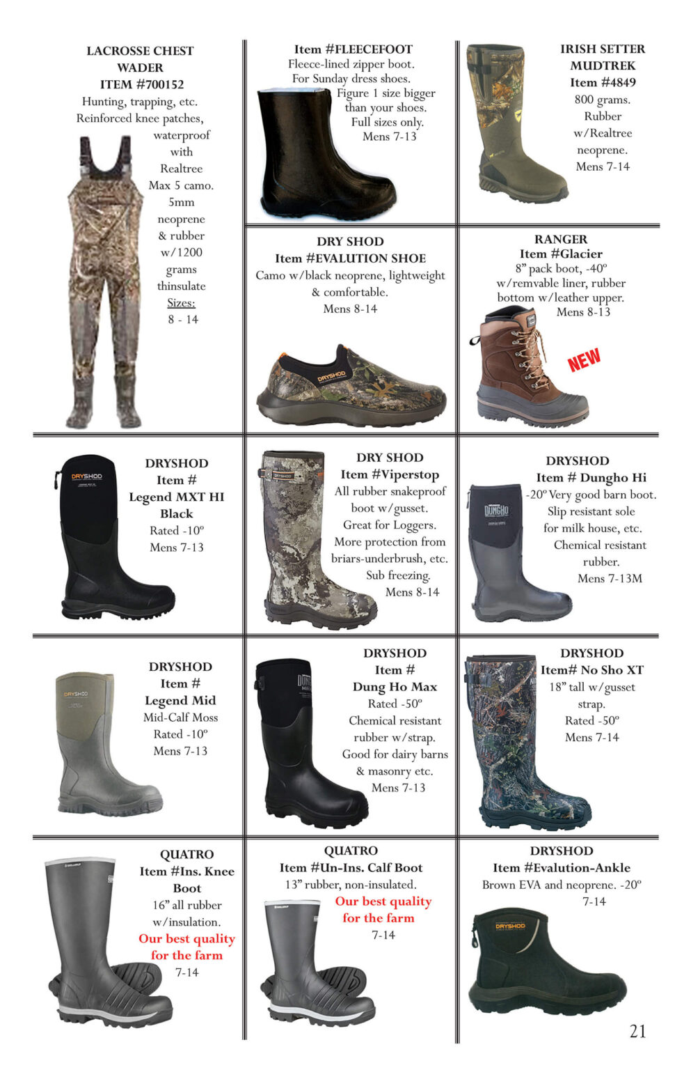 Boots and Beyond (FKA Mullet’s Footwear) is a one-stop shopping destination for value and quality.  Well-known and much appreciated for the wide selection of footwear, they feature over 70 name brand shoes and boots for the entire family, including Lacrosse, Red Wing, Danner Boots, Muck Boots, Dry Shod, Wolverine, SAS, Hush Puppies, Kenetrek, Keen, Lowa, Sketchers, and many others.