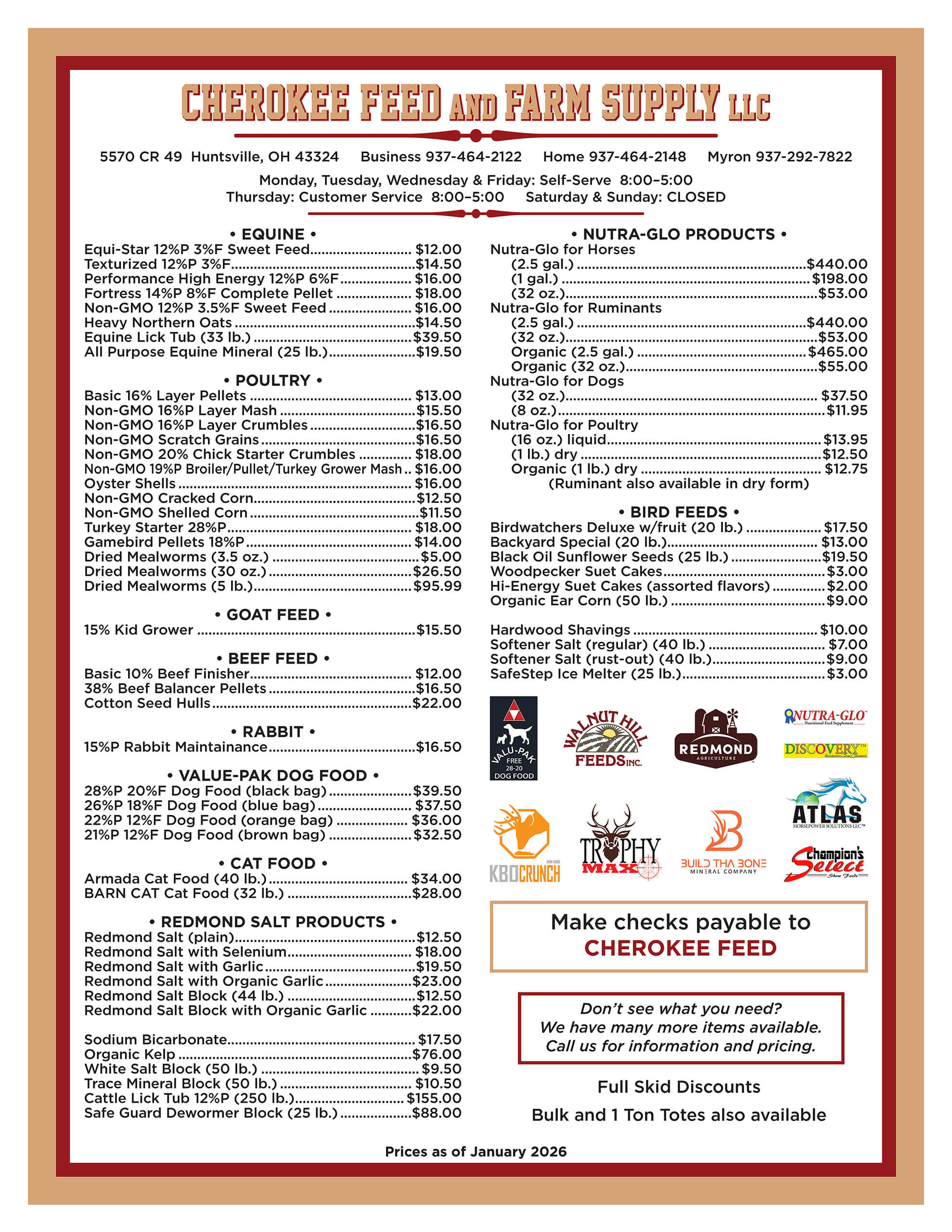 Located in Logan County, OH, Cherokee Feed & Farm Supply of Huntsville is a one-stop destination for a wide range of quality feeds (featuring Non-GMO & Organic varieties) and an ever-growing selection of farm supplies.