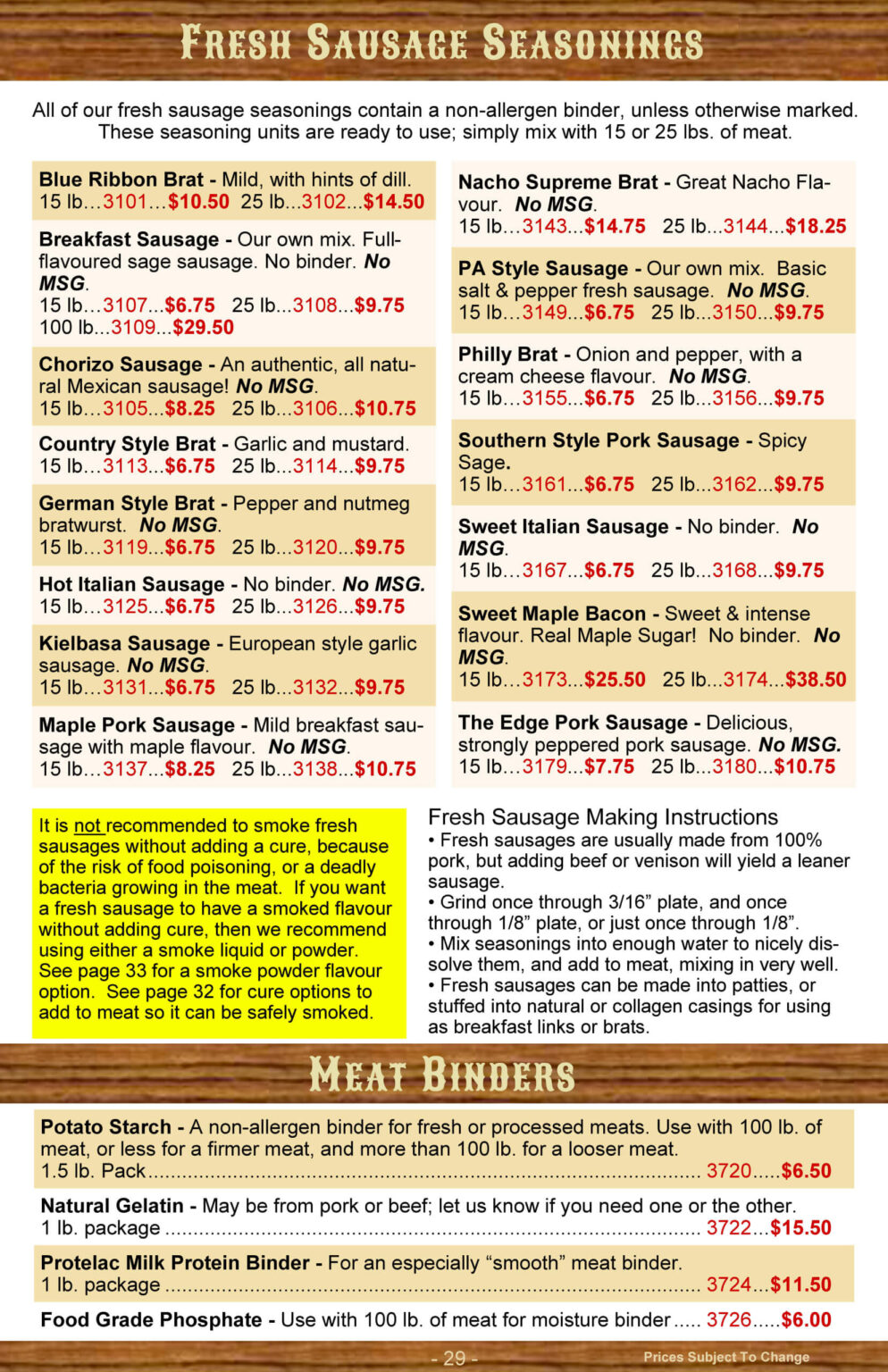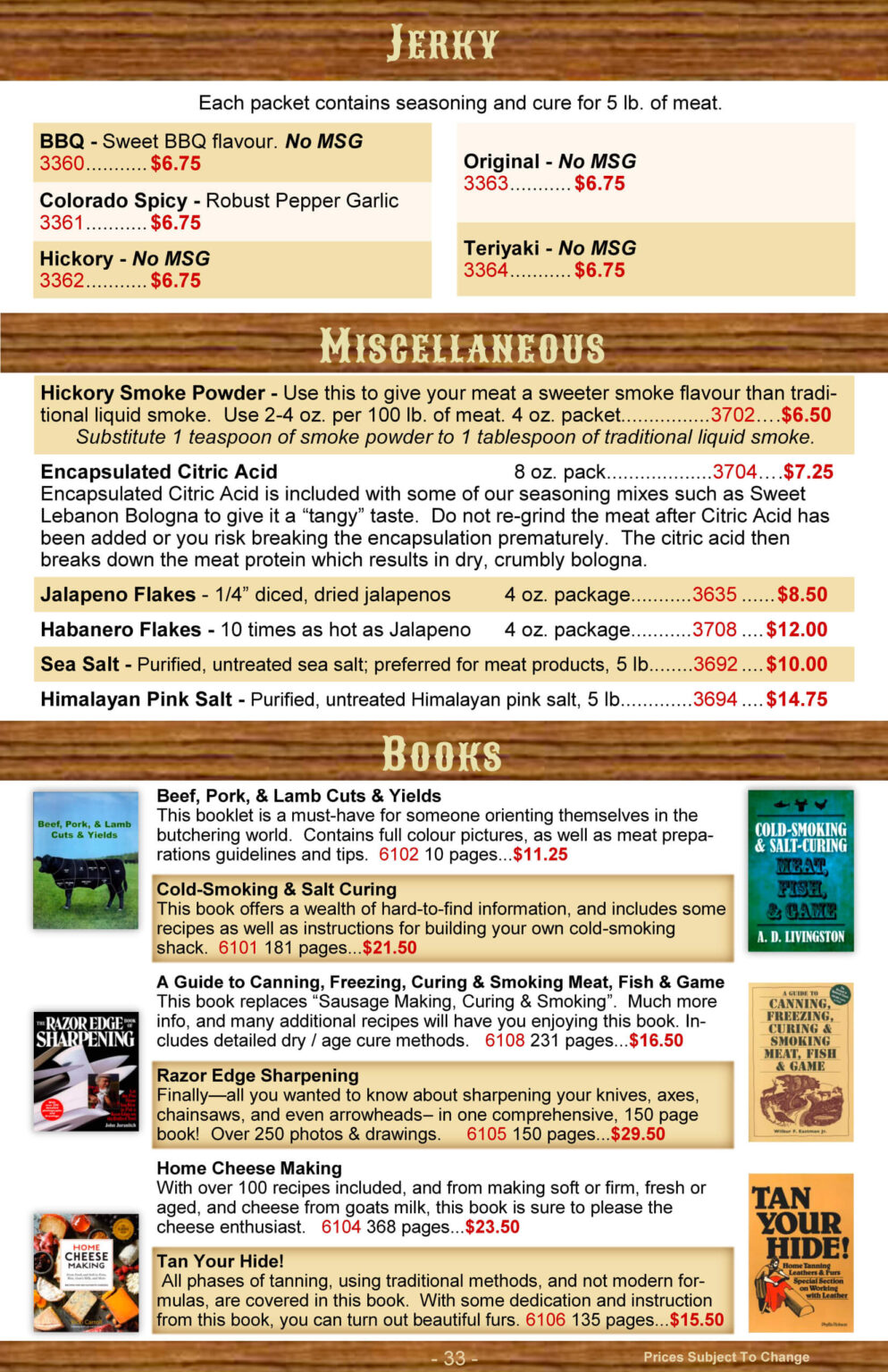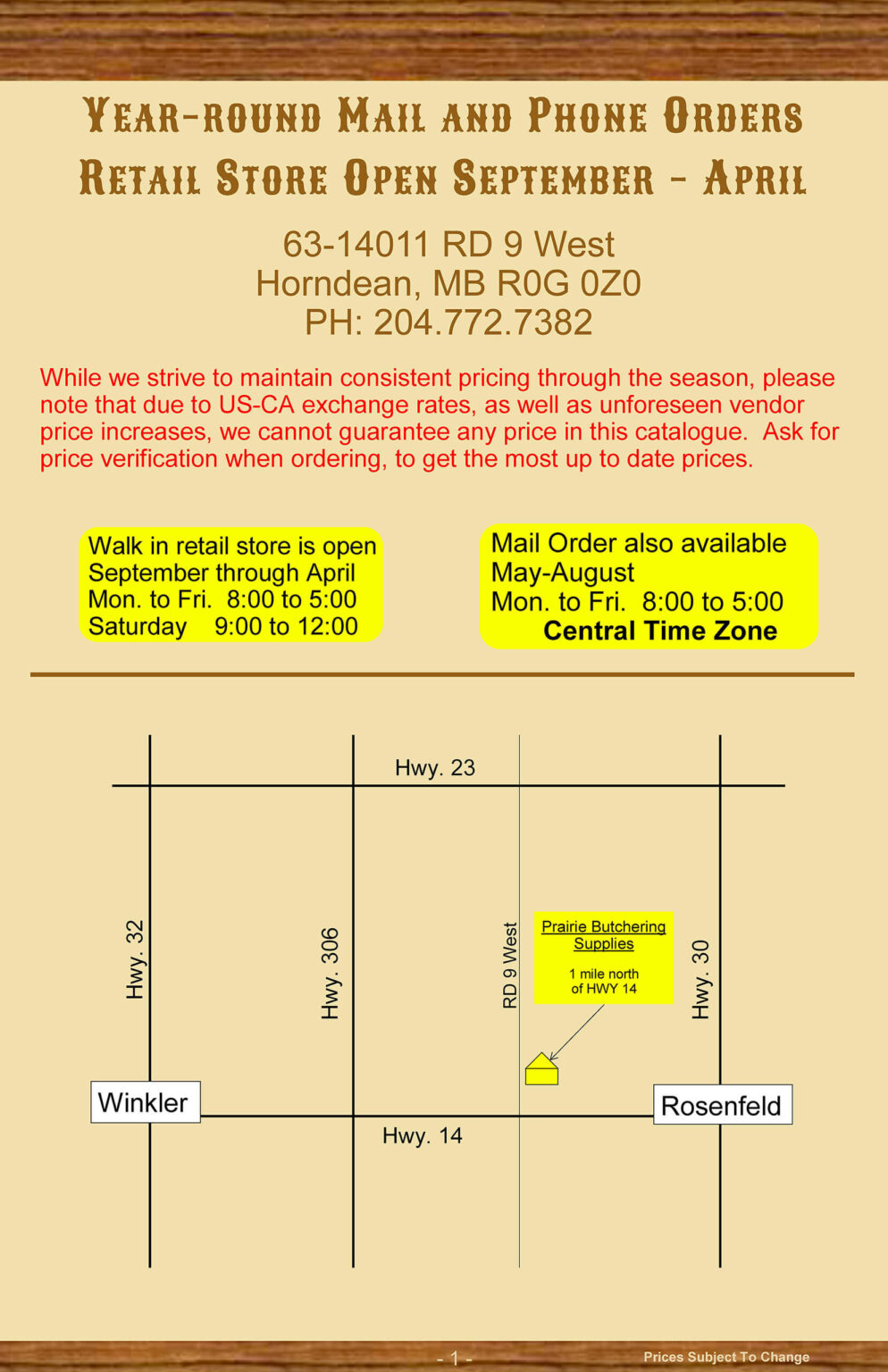 Prairie Butchering Supplies specializes in mail order for across Canada, but also welcomes customers to stop at their store if you have the opportunity.  Their goal is to help the amateur butcher process his meat from start to finish.  They also offer wholesale discounts to butcher shops or anyone who orders a large enough quantity at a time.  They look forward to hearing from you!