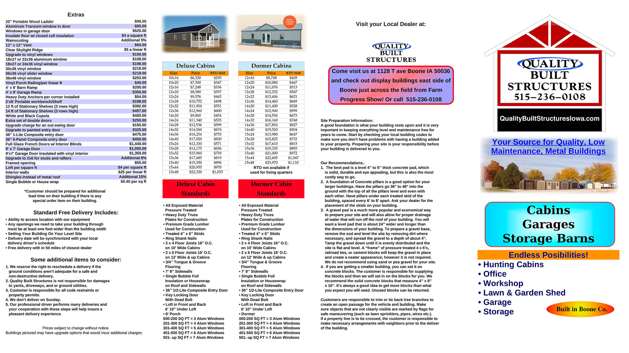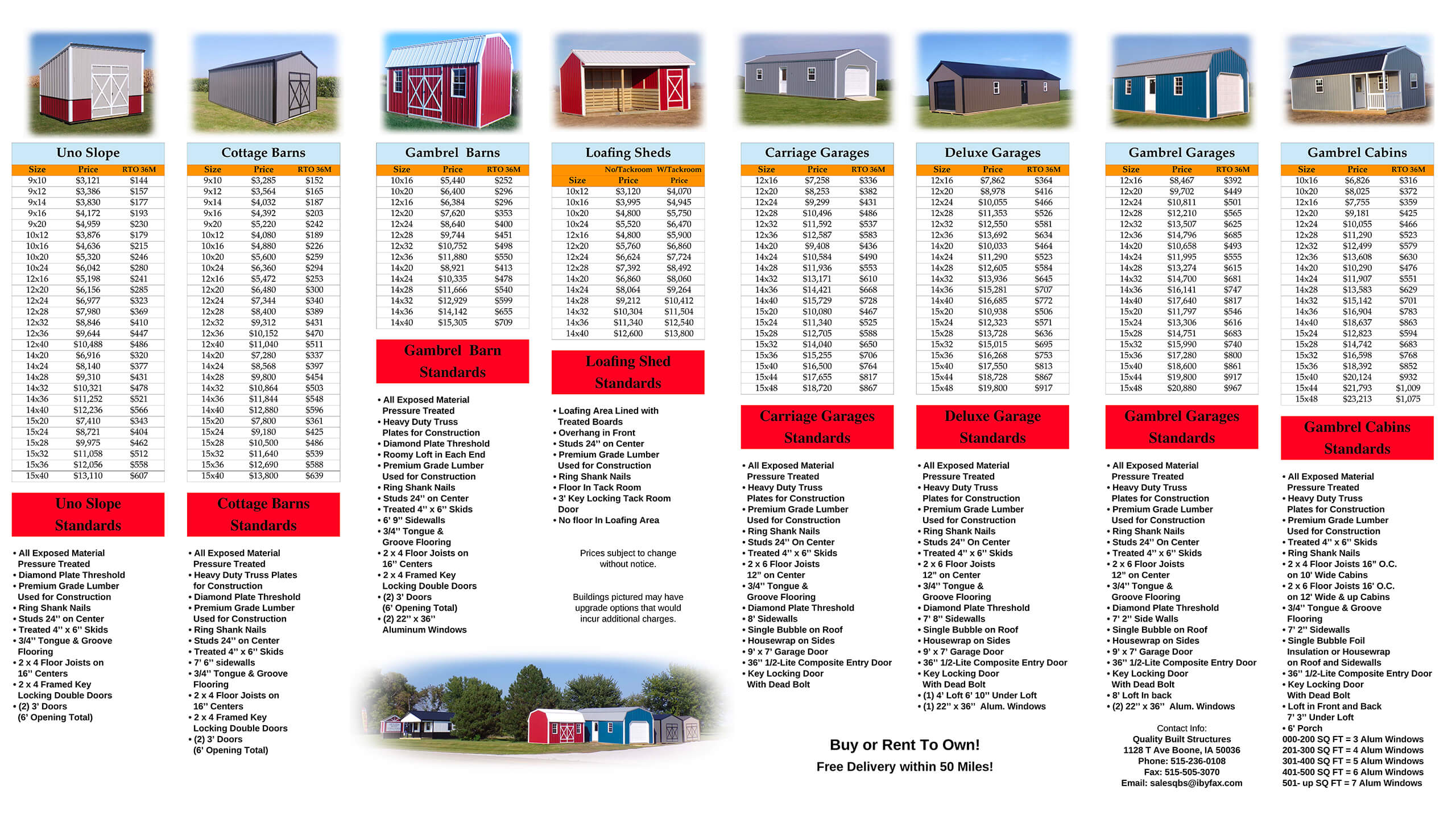 We pride ourselves on offering flexible options, including buy or rent-to-own, and provide free delivery within 50 miles of your closest dealer. Whether you need extra storage or a functional workspace, Quality Built Structures delivers reliable, long-lasting solutions for all your building needs.