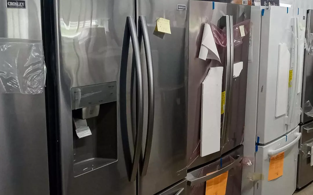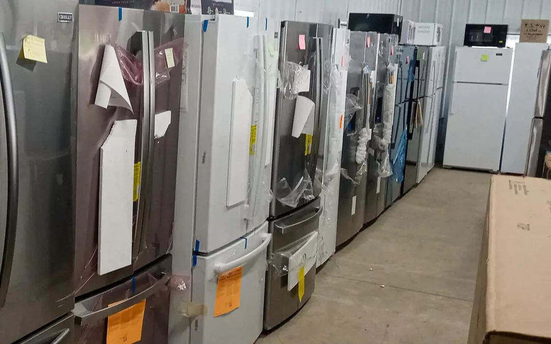 Huge amount of scratch & dent refrigerators, including Whirlpool, KitchenAid, Maytag, Frigidaire, Amana, and Jenn-Air.