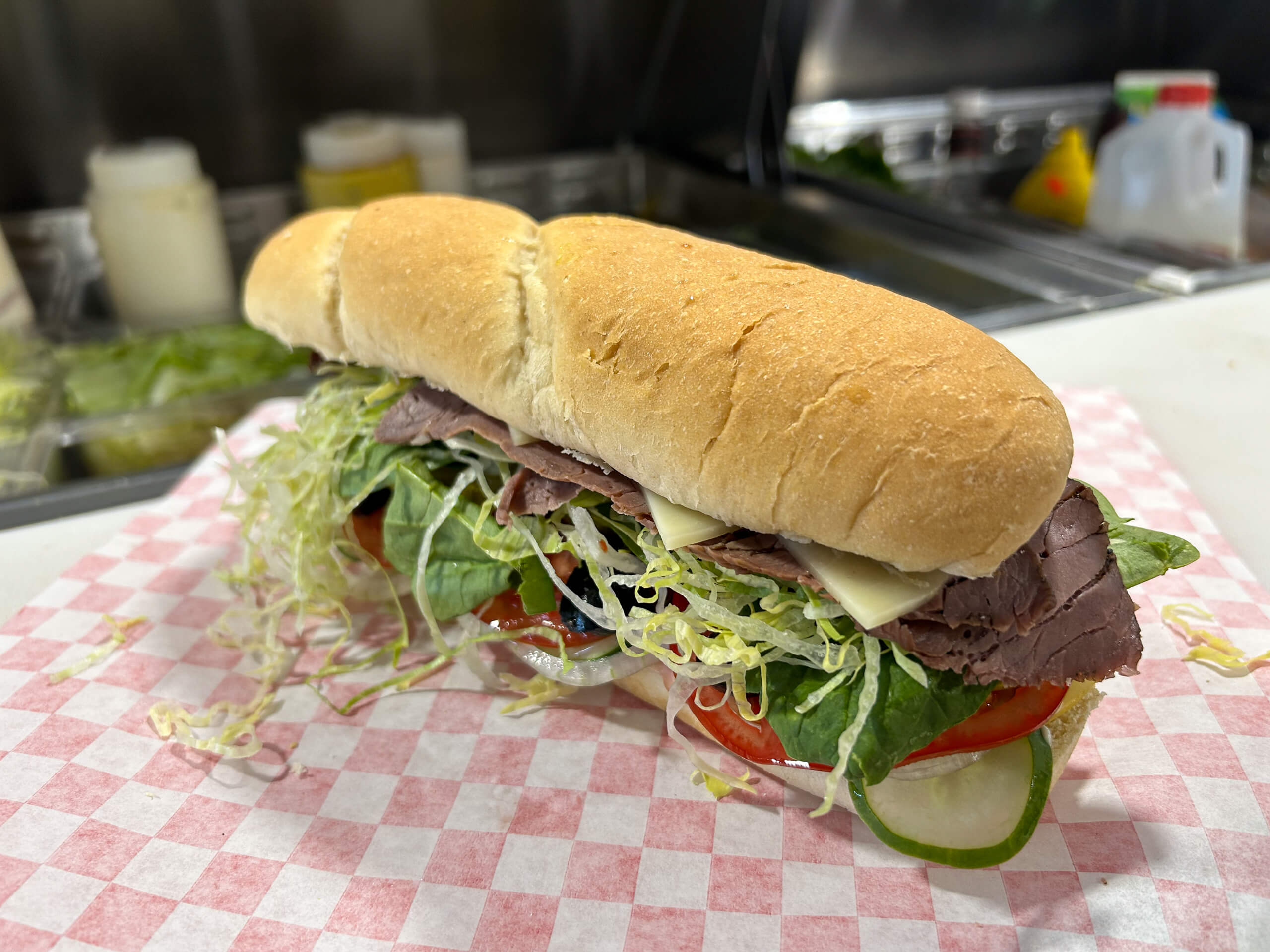 The on-location kitchen and full-service deli offers customers biscuits and gravy in the morning and made-to-order sandwiches throughout the day. Fresh food and hand-scooped ice cream can be carried out or eaten in, with dining booths located at the front of the store.